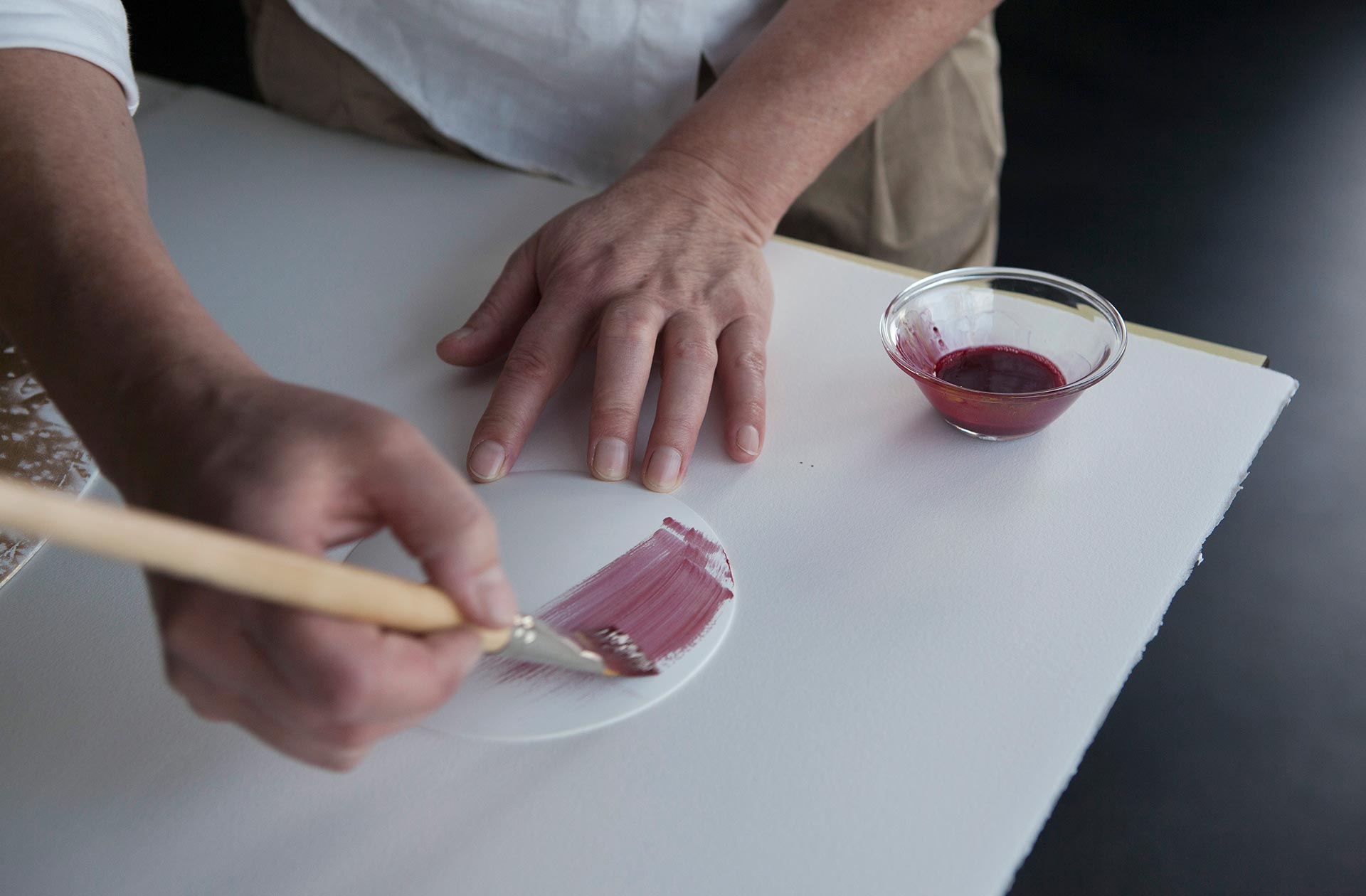 Originally a trained nurse, Andrea Röthlin is convinced that “nursing and caring for prematurely born children taught me to be cautious. These small creatures sharpened my sensitivity and perceptiveness.” She learned her artistic skills at a design academy in Lucerne, as well as in various ateliers. Since 1999, she has been working freelance with a focus on painting. Her ceramic bowls painted on the reverse with colored ink can be interpreted as planets. For more than ten years now, this 46-year-old artist has regularly exhibited her pieces, several of which were purchased by the Obwalden canton.
