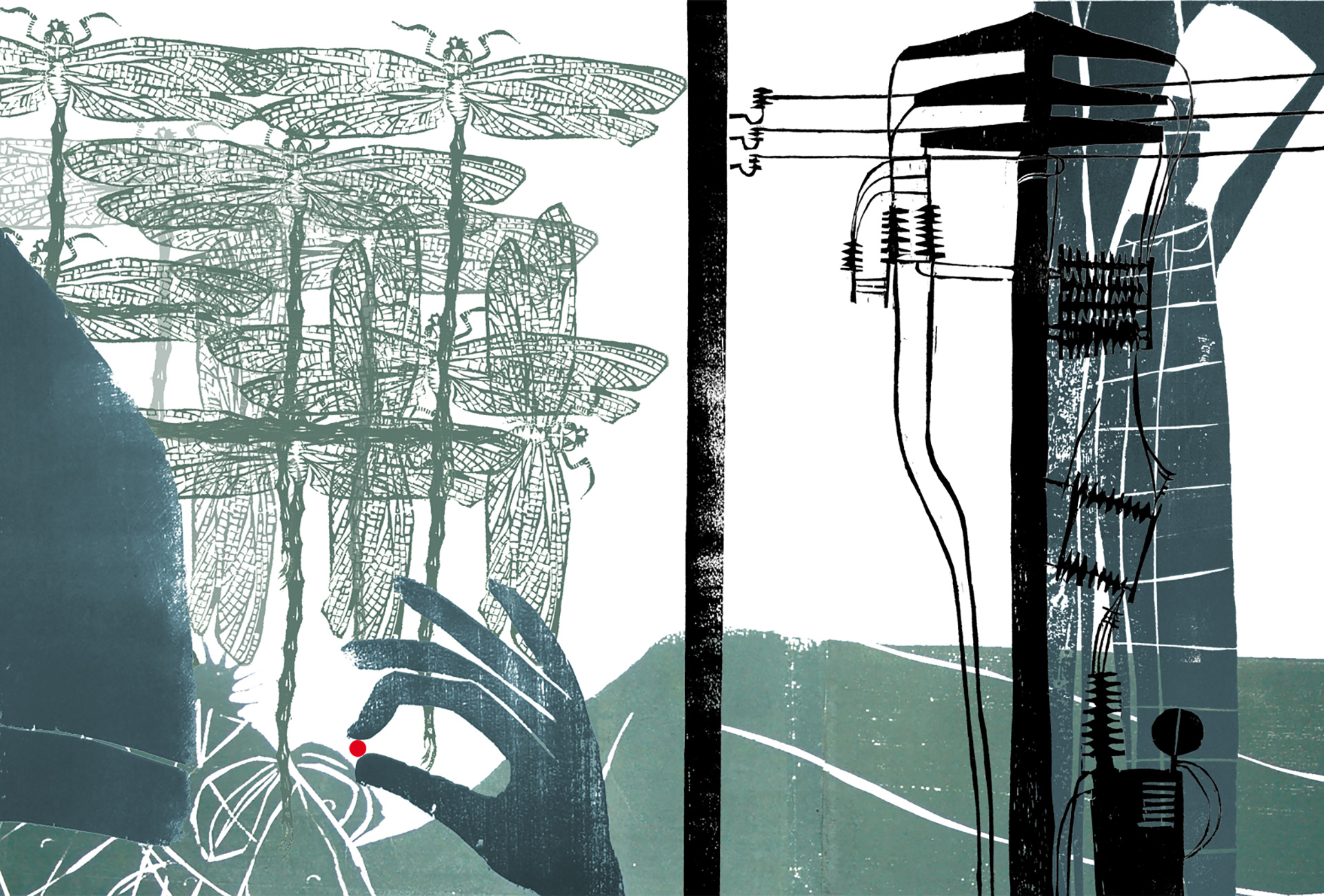 Jetzt einen Diasporenvorrat anlegen. Woodcut on publishing paper, 50 × 50 × 2 cm.