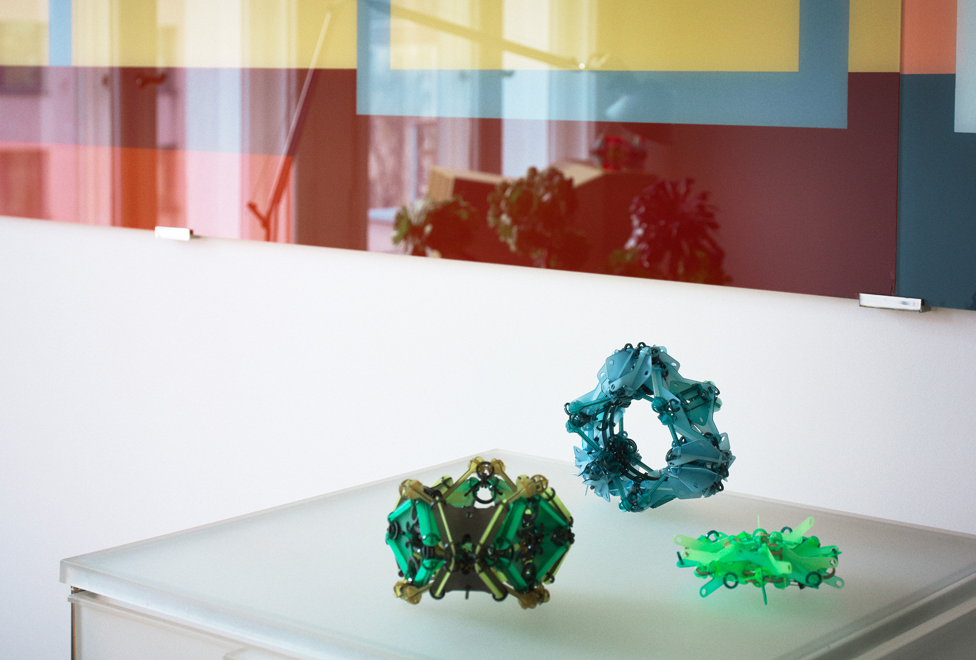 Svenja John has been working with plastic sheeting since 1994, imaginatively joining and interlacing small pieces painted in multifarious colors, to form highly original, semiotically multilayered jewelry. This jewelry maker from Berlin spoke with us about the symbiosis of art, technological perfection and manual work.