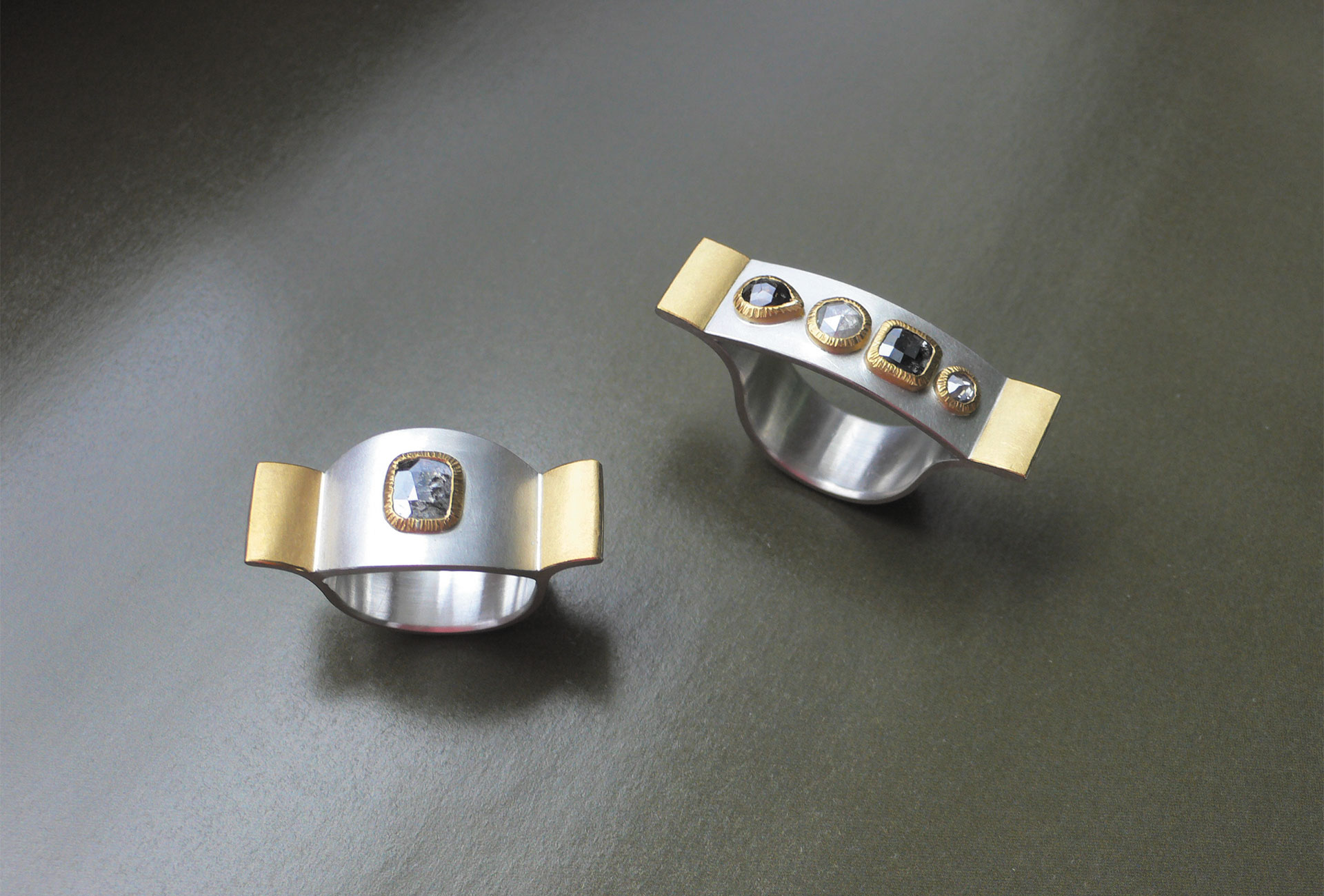 Rings, sterling silver, fine gold, diamonds