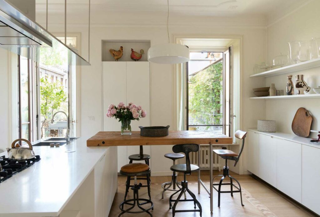 Two ceramics by Picasso in the kitchen: Paolo Riolzi photographed the apartment of the gallery owner, collector and patron Laura Borghi for Art Aurea.