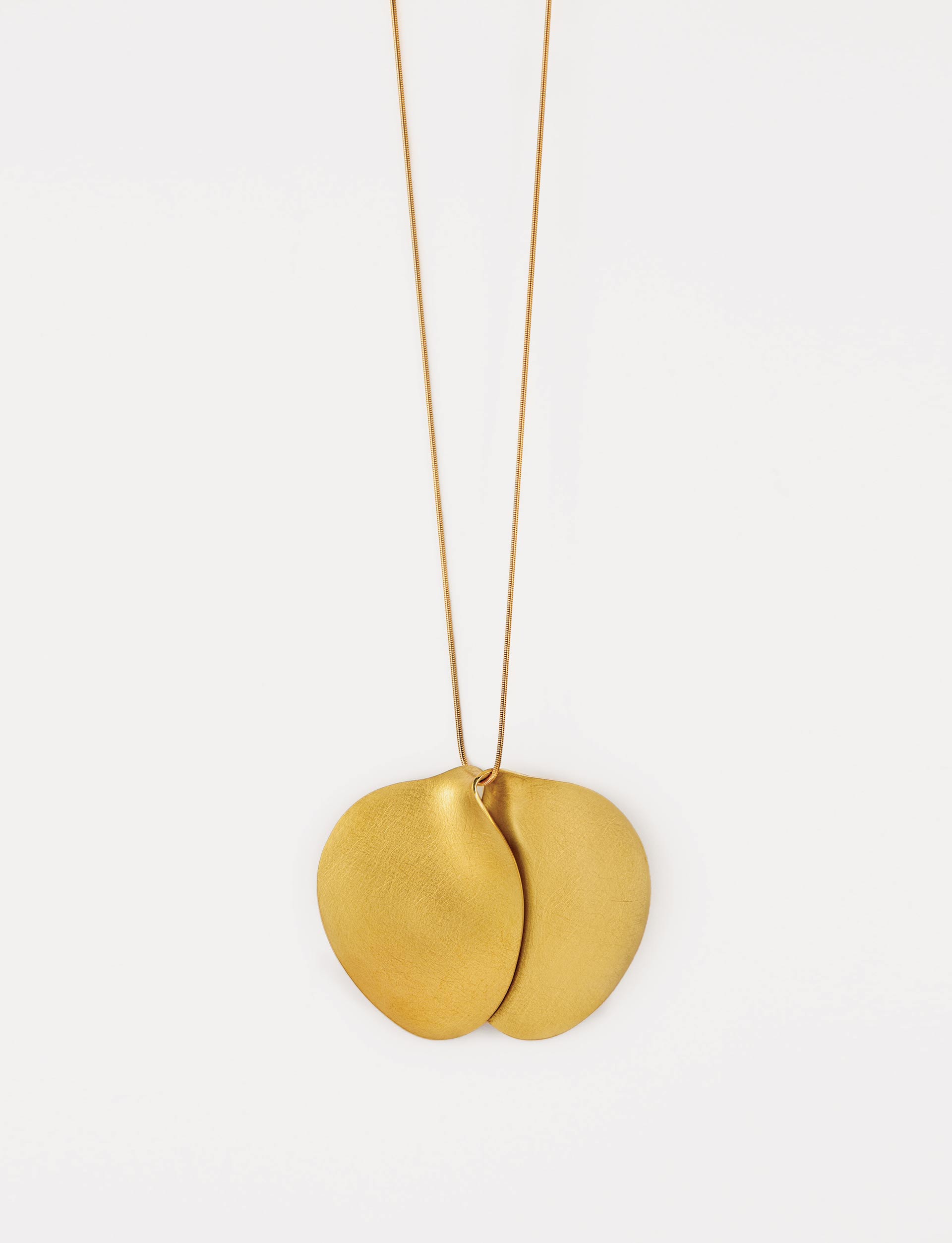 Christiane Iken, Pendant Goldammer, [yellowhammer]. Yellow gold 750, forged. Christiane Iken graduated from the FH Pforzheim and ran the jewelry gallery der goldene schnitt in Karlsruhe for many years. Since 2016, she has been making minimalist jewelry that “moves smoothly and delights the sense of touch so it can be worn gladly and with pleasure.” www.christiane-iken.de
