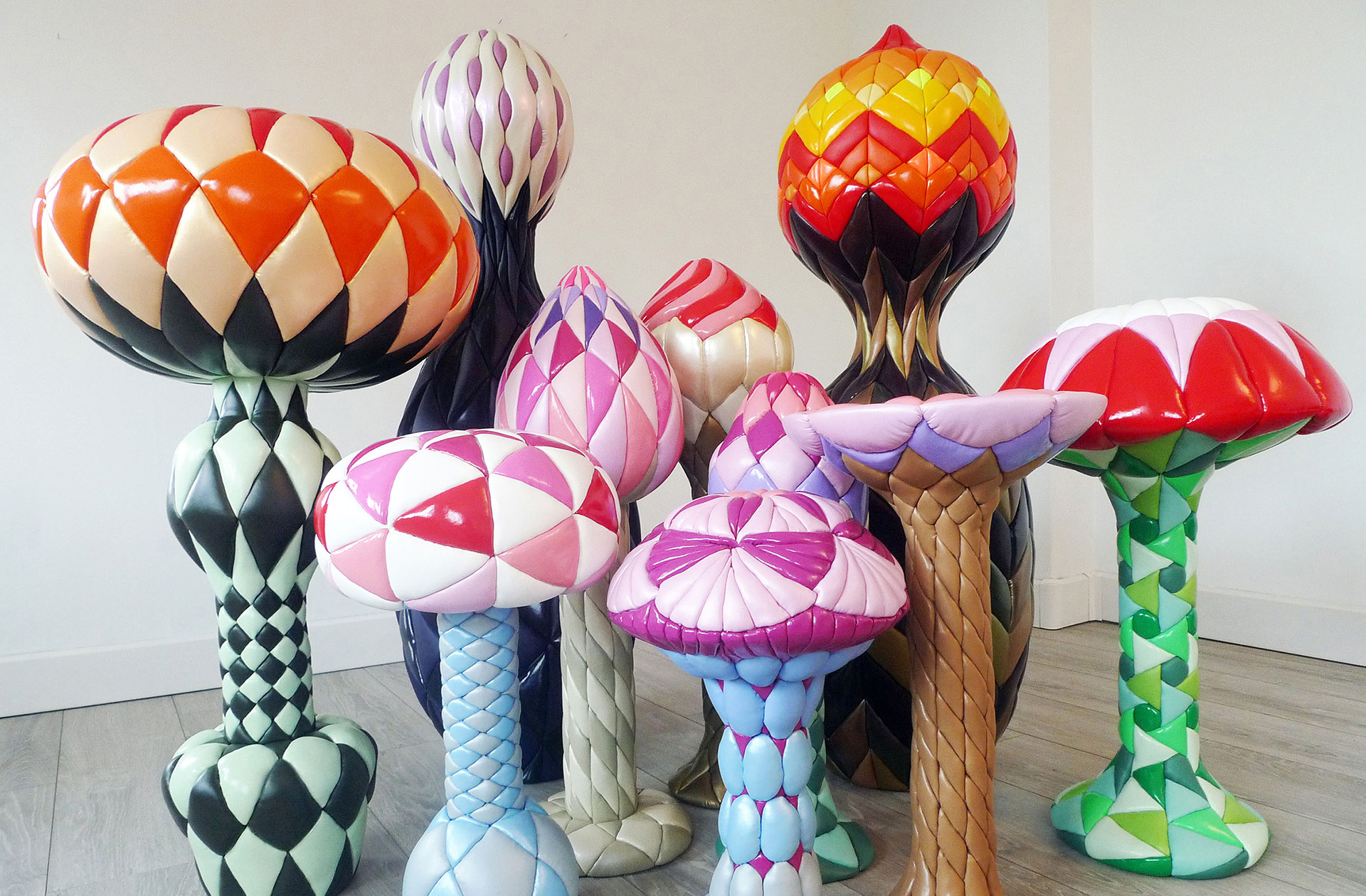 Mai Tabakian, Skulpturen Flower Power, 2012. Textil, extrudierter Kunststoff. Courtesy Mai Tabakian.
