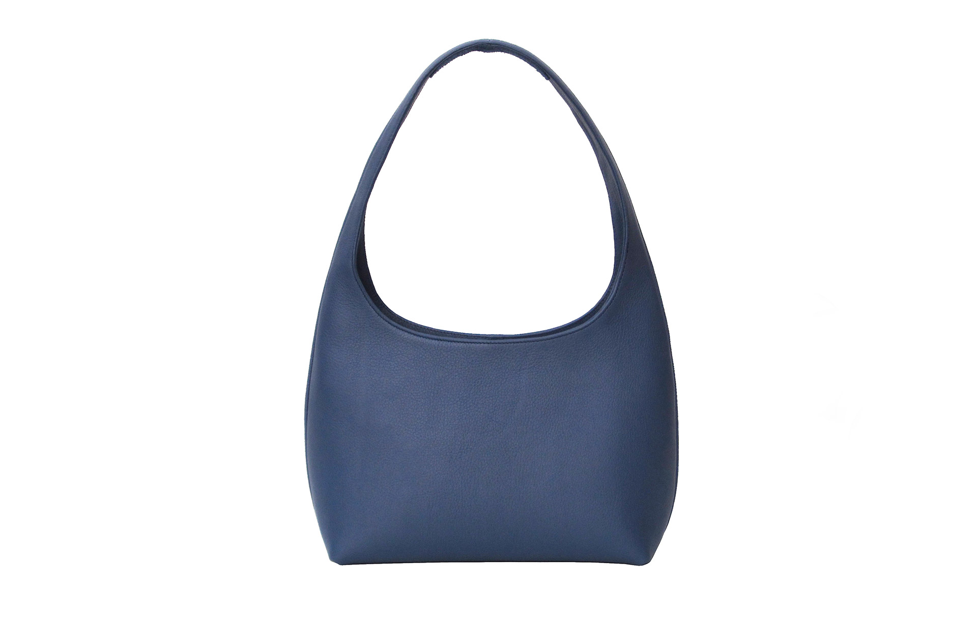 Pik Dame, Tasche Apfeltasche klein. Rindleder, rauchblau. 30 × 19 × 10 cm. 255 Euro.