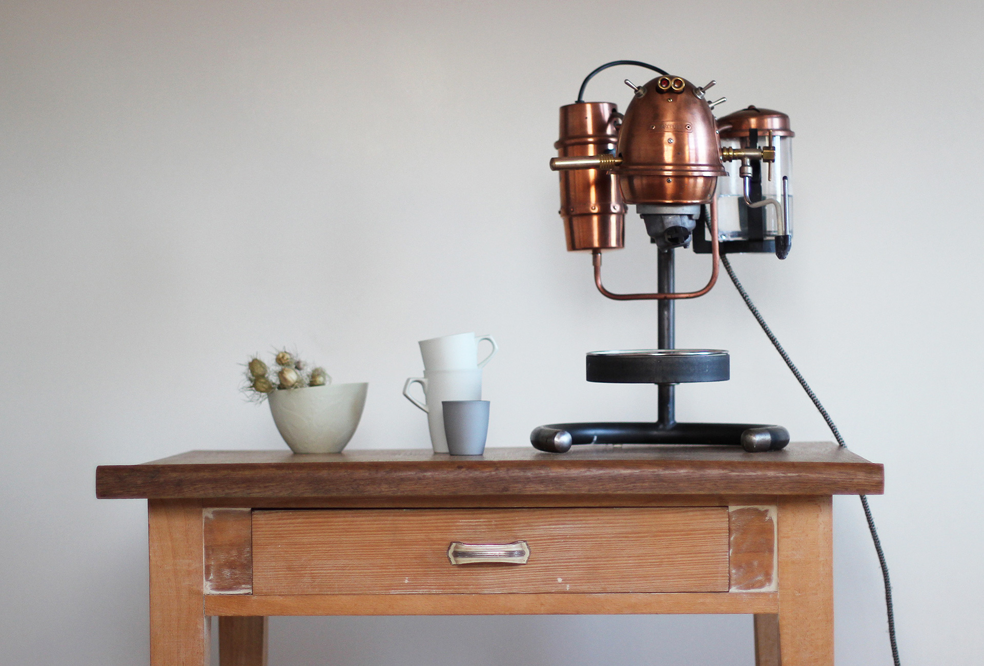 Espressomaschine Marcello. Kupfer und Stahl montiert.