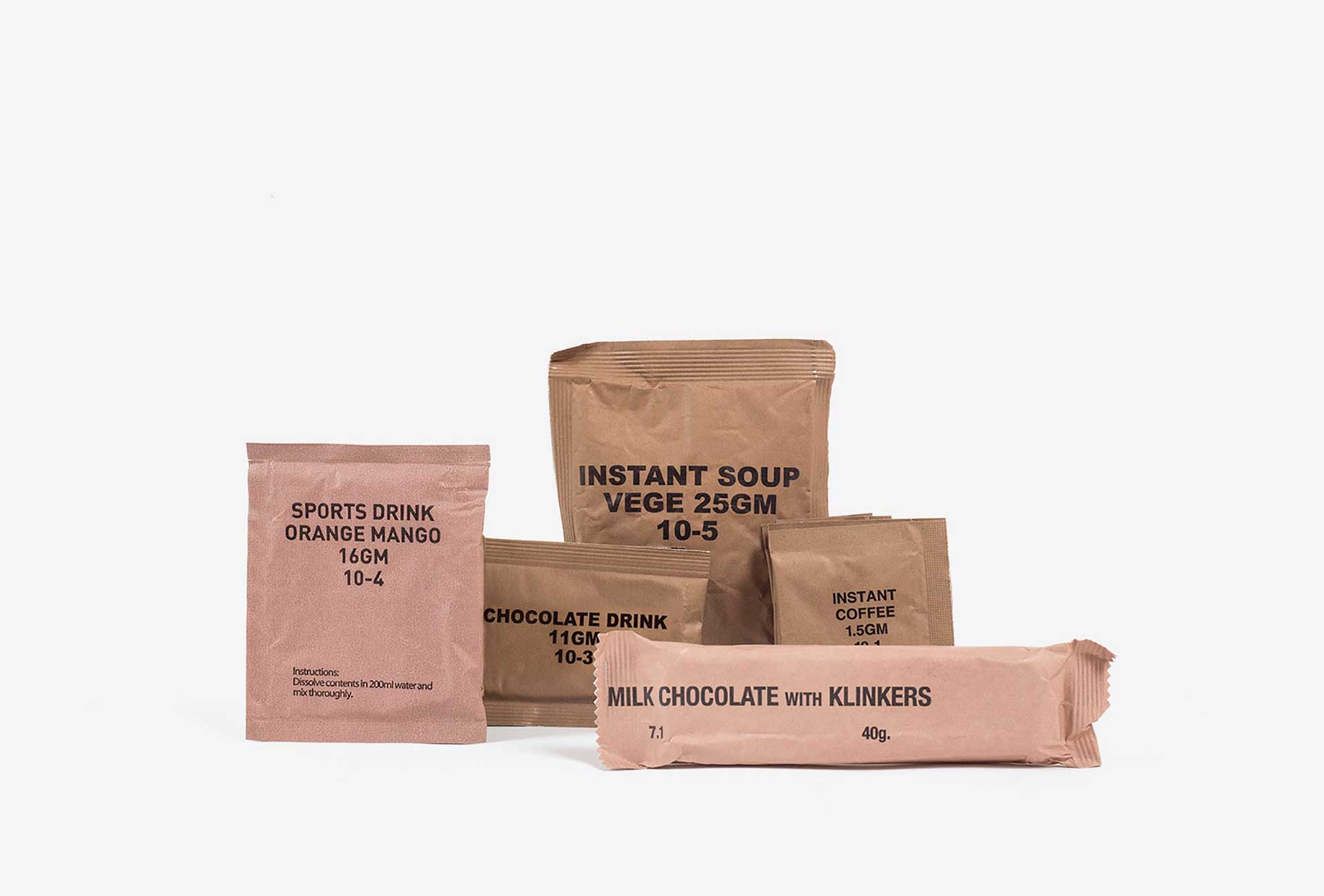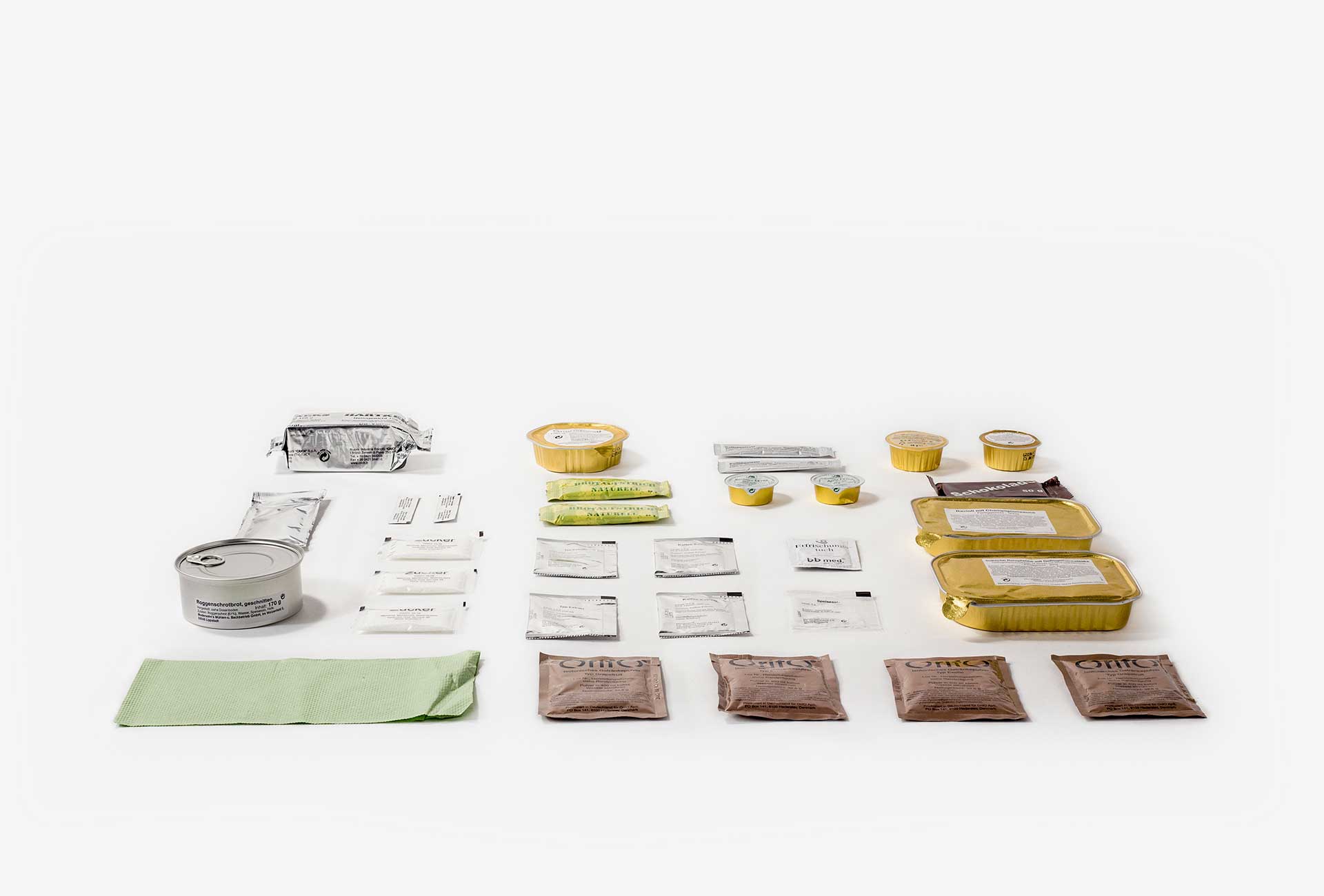 Im Krieg mag es den Soldaten herzlich egal sein, wie ihr Essen verpackt ist – Hauptsache, es ist da. Nun könnte man meinen, dass die Päckchen, Behälter und Schachteln entsprechend hässlich und langweilig aussehen. Dass das genaue Gegenteil zutrifft und sie oft vorbildlich designt sind, beweist Giulio Iacchetti ab dem 22. Januar in einer Mailänder Ausstellung. Anhand internationaler Beispiele beleuchtet er mit „K-Ration. Meals for Soldiers in Action“ Verpackungsdesigns für Militärrationen. Dabei fällt auf, dass der Grundgedanke immer der gleiche ist: Funktional muss es sein, man beschränkt sich auf das Wesentliche. Entsprechend minimalistisch fällt ihre Gestaltung aus. Neben den gezeigten Essensrationen wird auch das Essen der italienischen Astronautin Samantha Cristoforetti gezeigt, die sich gerade an Bord der Internationalen Raumstation befindet. Das recht ungewöhnliche Thema greift Iacchetti aus aktuellem Anlass auf. Vom 1. Mai bis 31. Oktober findet die Weltausstellung Expo unter dem Motto „Feeding the Planet: Energy for Life“ in Mailand statt.