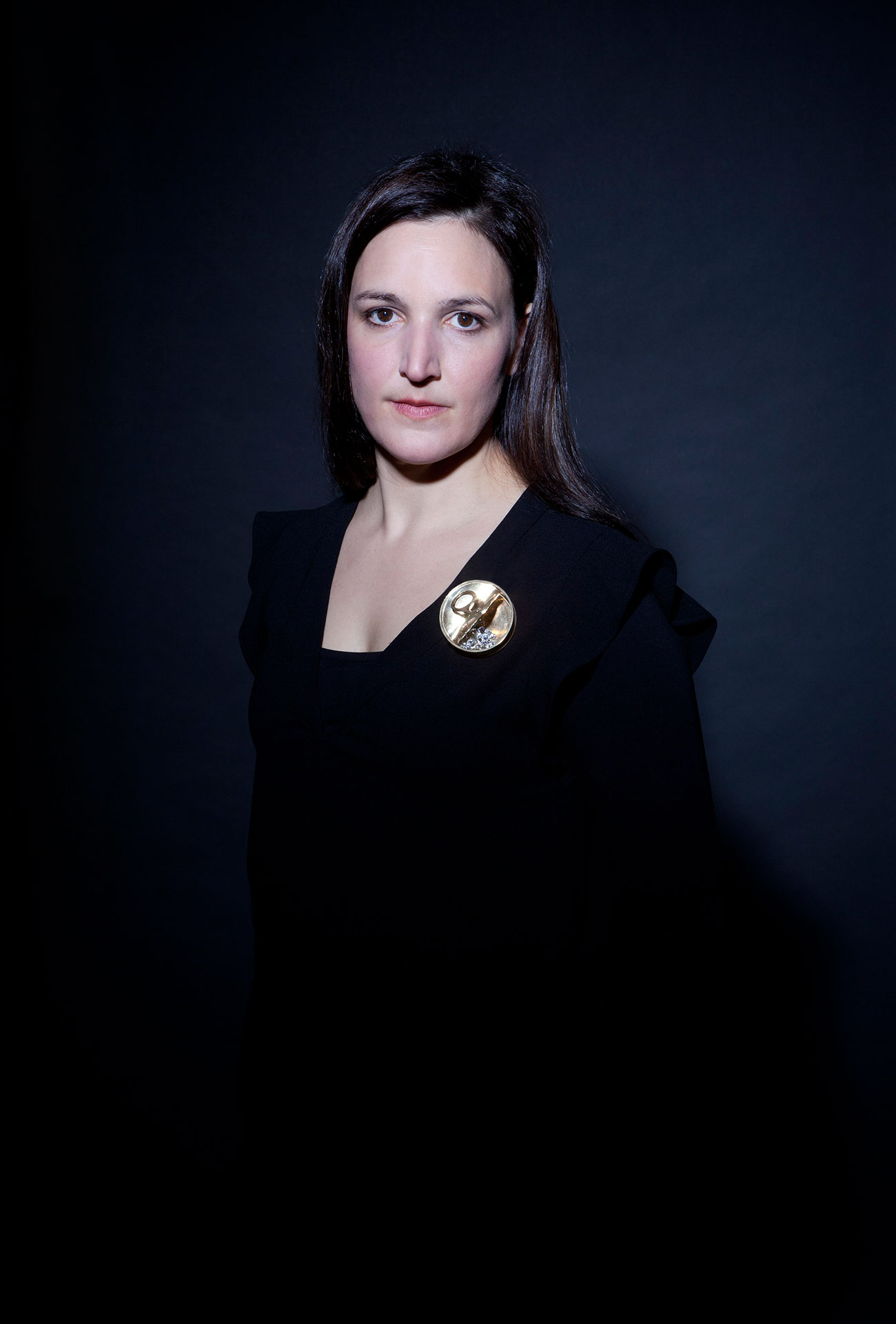 Carolina Camilla Kreusch mit Brosche von Reka Lörinz, Galerie Biro. Foto Miriam Künzli für Art Aurea.