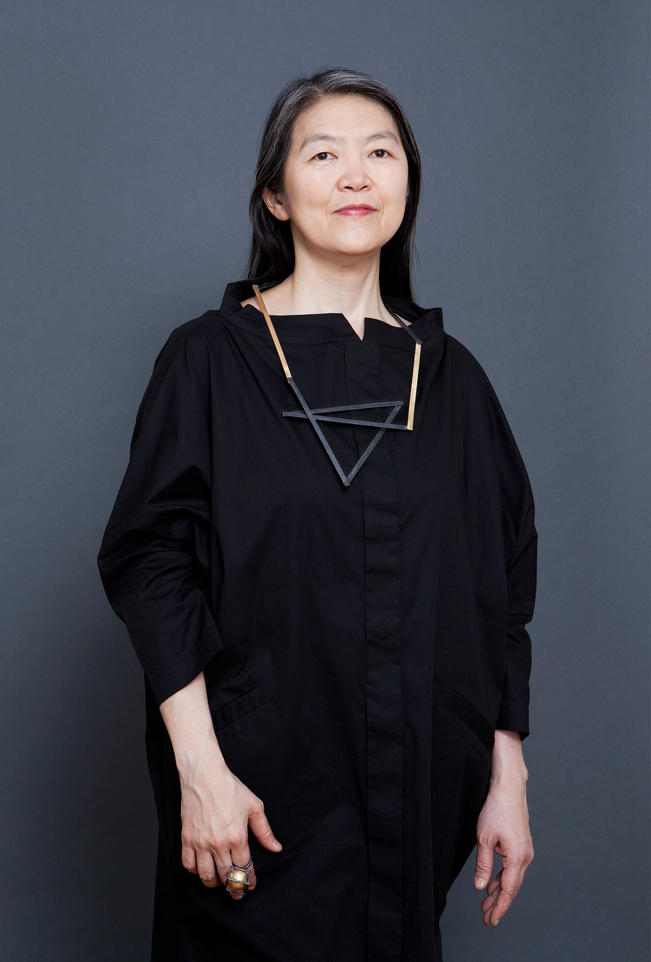 „Mich hat die Klarheit und Flexibilität beeindruckt. Jede Form kann verschwinden, dann muss man sie wieder suchen. Wie bei der Musik, wo man die Töne auch nicht festhalten kann. Ich liebe das matte Gold mit seiner Leichtigkeit in Verbindung mit dem Anthrazit des geschwärzten Silbers. Obwohl es Metal ist, fühlt es sich wie Holz an.“ Masako Ohta, München, Pianistin