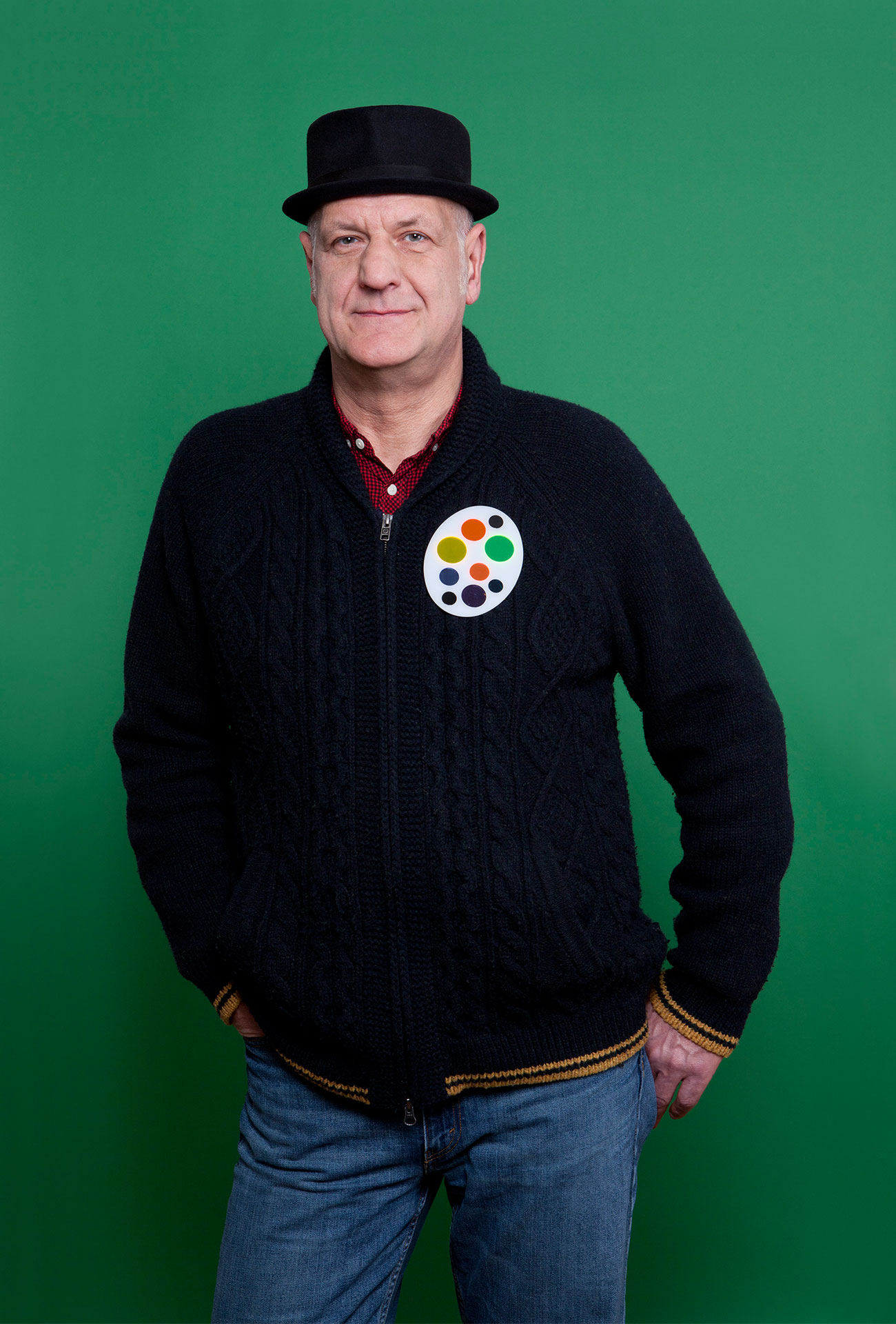 Reinhold Ludwig mit Brosche von Francesco Pavan, Silber, Emaille, Galerie Rosemarie Jäger. Foto Miriam Künzli für Art Aurea.