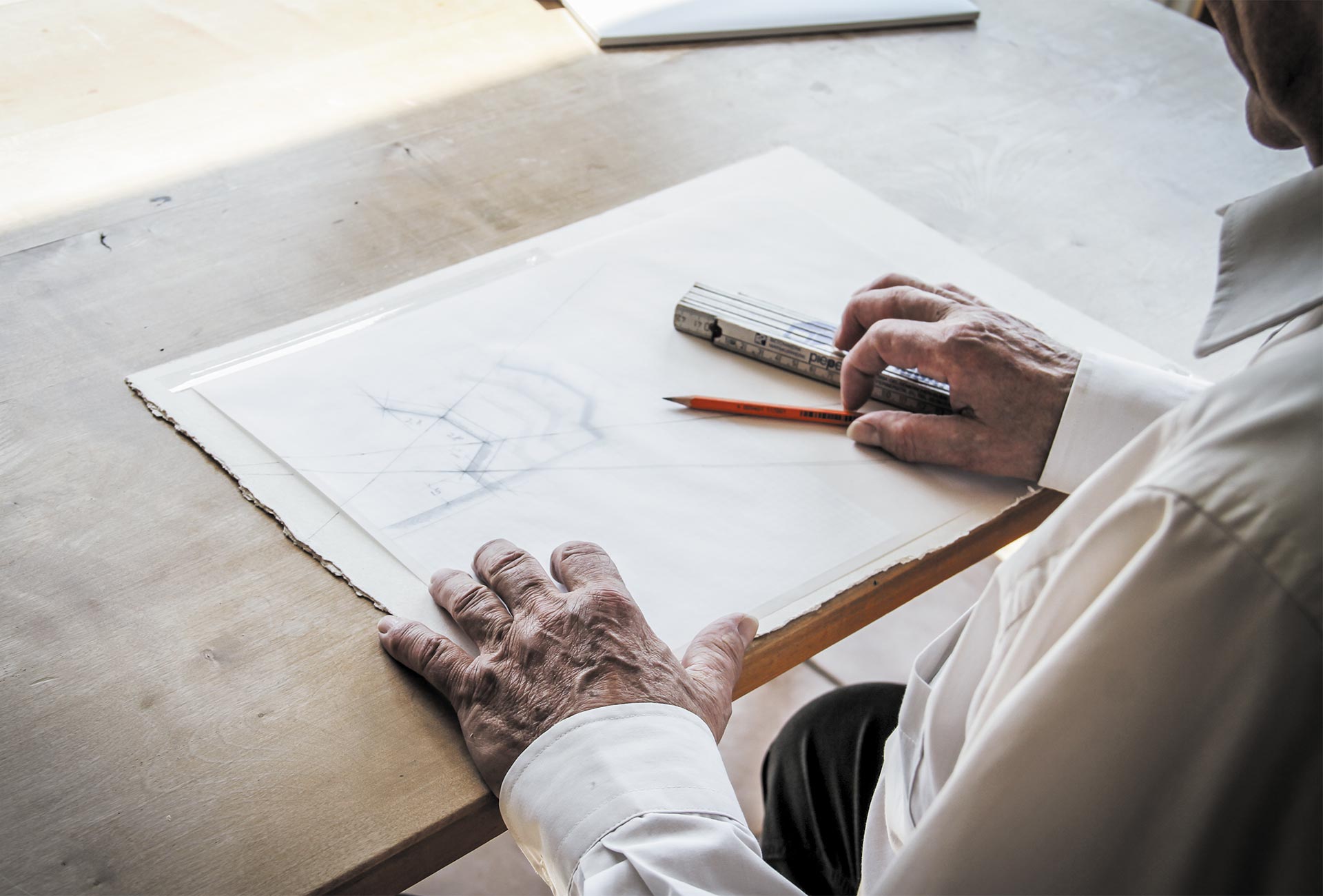 Christoph Lungwitz am Zeichentisch. Photo Judith Büthe