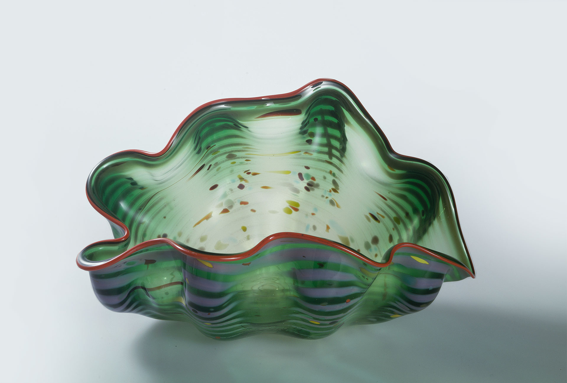 Die Rückschau beginnt in den 1930er Jahren, als der italienische Architekt Carlo Scarpa in den Werkstätten Muranos eine revolutionäre neue Formensprache prägte. Für Vasen und Schalen griff er auf längst vergessene Techniken wie die Schleiftechniken des Battuto und Inciso zurück. Zudem setzte er das opake Pulegosoglas sowie die aus farbigen Glasstangen gefertigten Murrinen als Werkstoff ein. Nach dem Zweiten Weltkrieg sorgten Künstler wie Fulvio Bianconi, Ercole Barovier, Flavio Poli für neuen Aufschwung. Murano zog dadurch weitere internationale Künstler an. Bis heute entstehen meisterhafte Objekte der Muraneser Glaskunst, etwa durch Monica Guggisberg/Philip Baldwin (Schweiz/USA), Yoichi Ohira (Japan), Mary Ann Toots Zynsky (USA) und den Schweizer Thomas Blank. Das Museum Bellerive zeigt rund 300 Glasarbeiten, entstanden in den Glasmanufakturen von Murano und in Künstlerateliers.