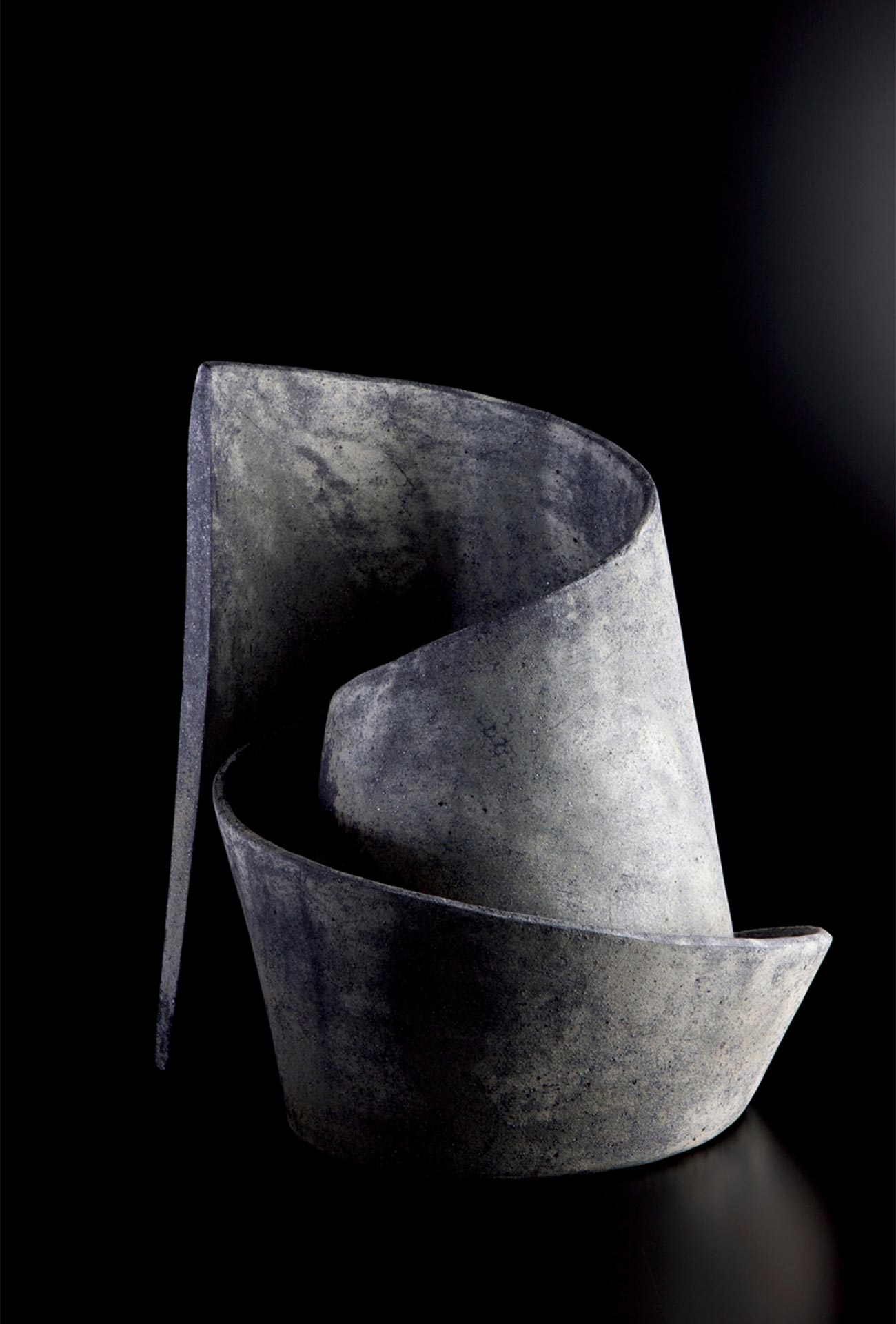 Das Werk von Ken Mihara (*1958) wurzelt in der traditionellen Keramik seiner Heimat. Ausgebildet bei Kenji Funaki, einem der hervorragendsten Mingei-Töpfer Japans, hätte es nahegelegen, sich in die Volkskunst-Keramik der Mingei-Bewegung einzureihen. Doch die so komplex wie einfach erscheinenden Keramiken stehen zwischen Tradition und Avantgarde, zwischen Gefäß und Plastik. Mit ihren Oberflächen von nuancierter Chromatik erinnern sie an im Holzofen gebrannte Gefäße der Wabi-Sabi-Ästhetik wie auch an minimalistische Skulpturen der Moderne. Mit viel Feingefühl wird hier Wölbung gegen Fläche, Kante gegen Volumen, harter Winkel gegen weiche Linie gesetzt. Sein Tone gräbt Mihara unweit seiner Werkstatt selbst ab. Die Formen brennt er 40 Stunden in einem Gasofen, nachdem er sie mit Kaolin-Engoben überzogen hat. Nach dem Brand schleift er diese Brandkruste vollständig ab, um dann ein zweites Mal für 40 Stunden zu brennen. Die so entstehenden matt-rauen Oberflächen mit scheinbar natürlicher, nie gesehener flechtenartiger Farbigkeit verleihen den Arbeiten eine monumentale Zeitlosigkeit.