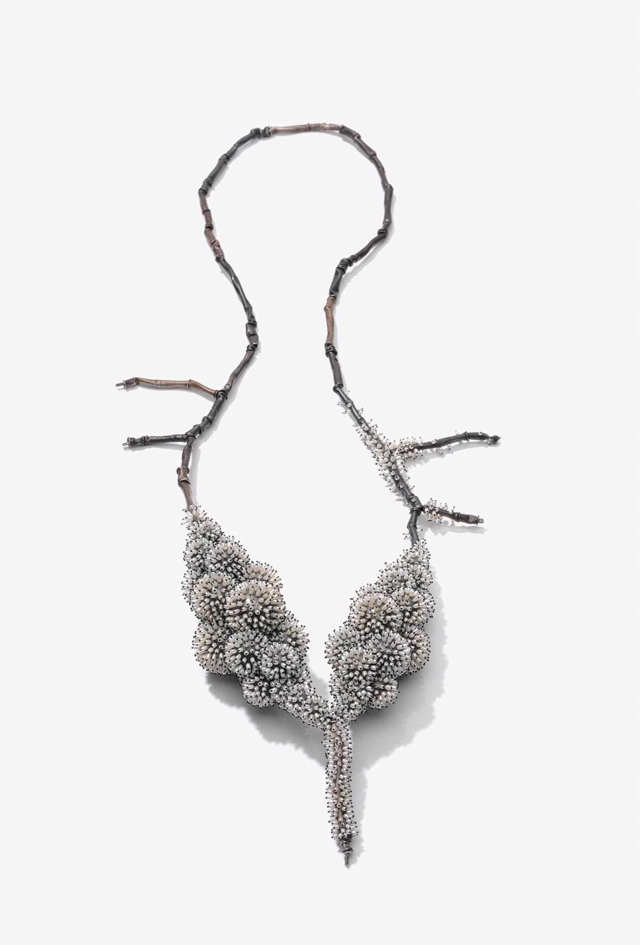 Sam Tho Duong, Halsschmuck <em>frozen</em>. Reiskornperlen, Silber