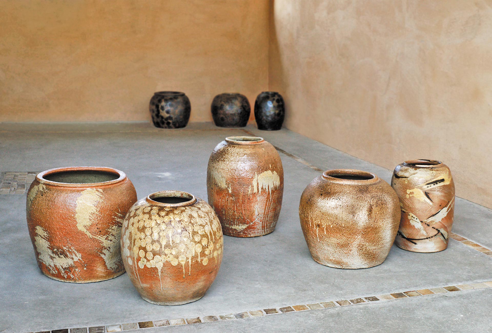 Große Vasen. Holzfeuer 1350°C, gedreht, grob schamottiertes Steinzeug, Engoben,