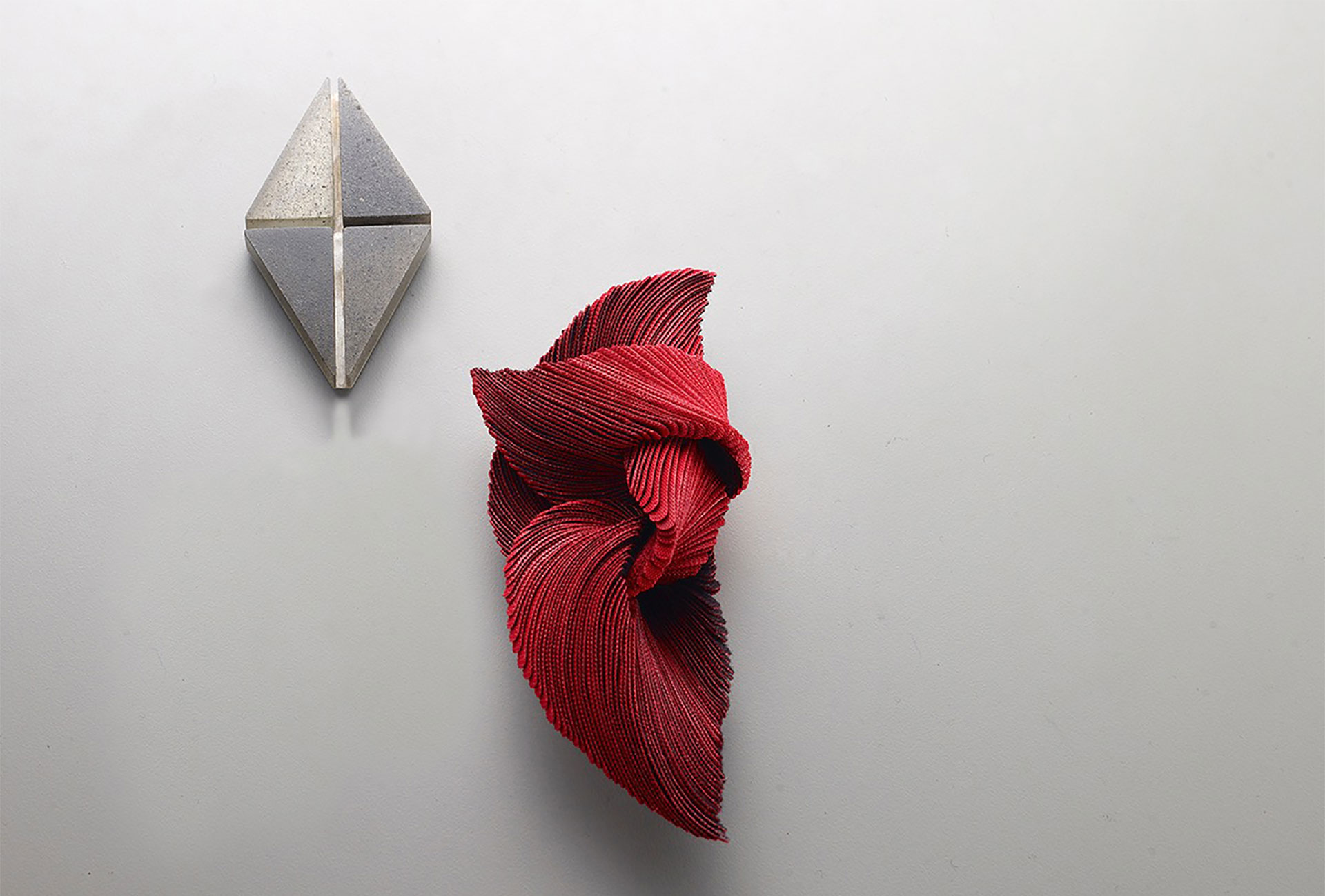 Die Natur und der kreative Umgang mit Materialien sind auch Ausgangspunkte von Yoshie Endas Arbeit. „Blumen blühen für einen kurzen Moment herrlich auf und verwelken schließlich. So ist die Natur, aber ich fühle Mitleid mit der flüchtigen Schönheit der Blumen“, gibt Enda zu. Im Versuch, das Leben der Blume zu verlängern, setzt sie ihnen ein „Denkmal“, indem sie trockene Blumen und Kräuter mahlt und mit Harz mischt. Während des Prozesses fügt Enda natürliche Farben hinzu, um einen hell-zu-dunkel-Farbverlauf zu erreichen, der zum Markenzeichen ihrer Arbeiten geworden ist. Durch die Reflora-Arbeiten hat Enda, deren Stücke in Lady Gagas Video Born This way (2011) zu sehen waren, Blumen intensiv erforscht, wobei sie sich für sechs Pflanzen entschied, die ihre natürliche Farbe behalten, wenn sie mit Harz gemischt werden. „Ich möchte, dass mein Schmuck durch Zeit und Raum reist und noch einmal aufblüht“, sagt sie. Endas romantische Ideen und zarte Materialien stehen in krassem Kontrast zu den geometrischen Formen ihrer Broschen und Halsketten. Mit Reflora bietet die im japanischen Saitama geborene und lebende Künstlerin eine zeitgenössische Sichtweise von memento mori an – der Sterblichkeit alles Lebendigen.
