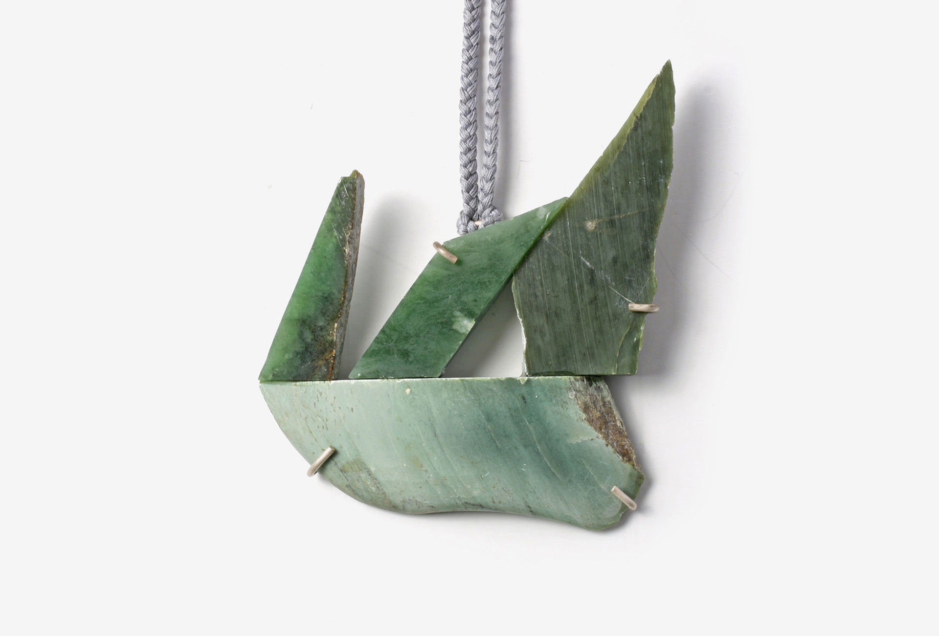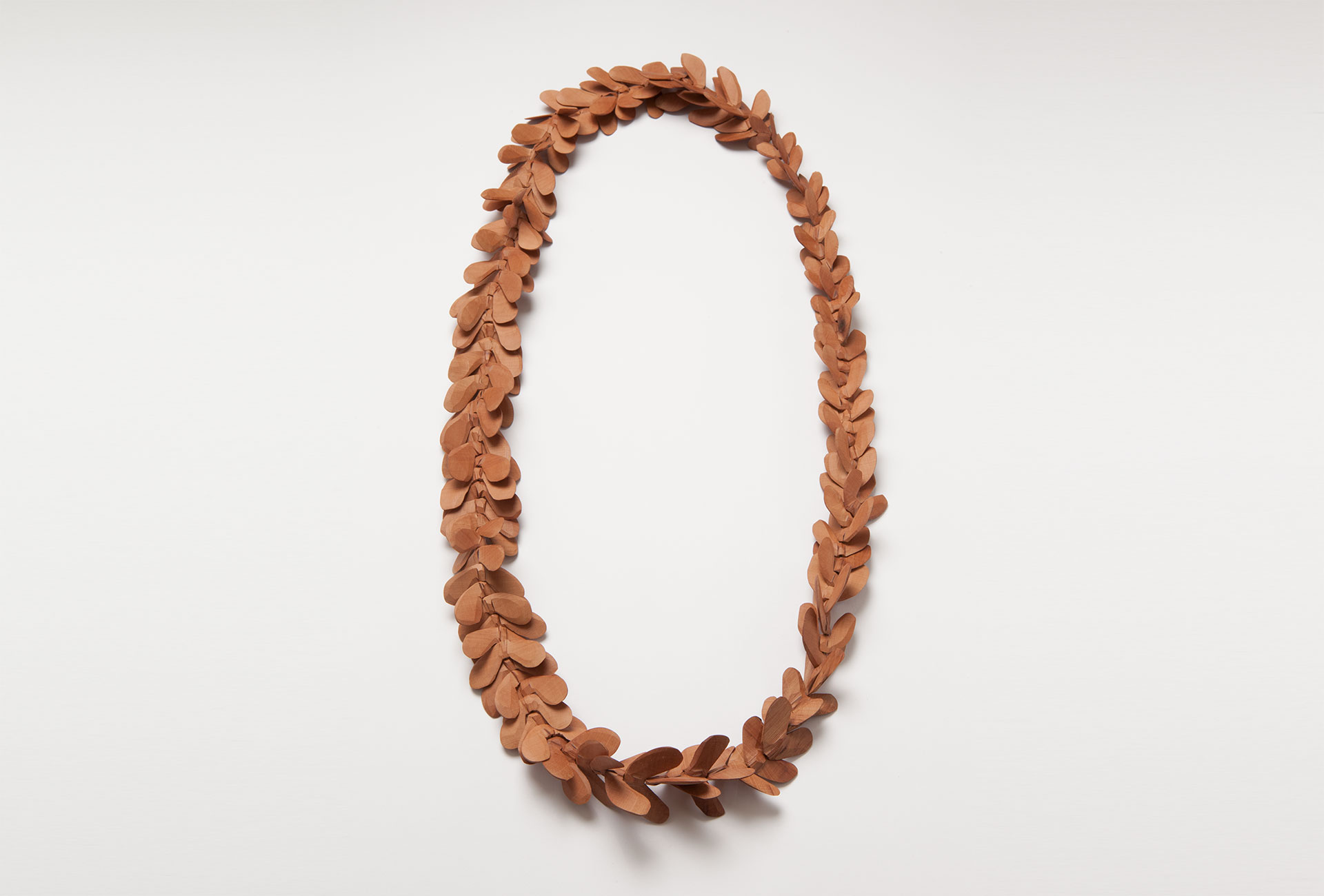 Ignasi Cavaller Triay, Halskette Being On The Fig Tree, 2015. Lemon-Chrysopras, Kevlar, Plastik, wilder Ölbaum, Lack. Photo Manuel Ocana Mascaro. tal20
