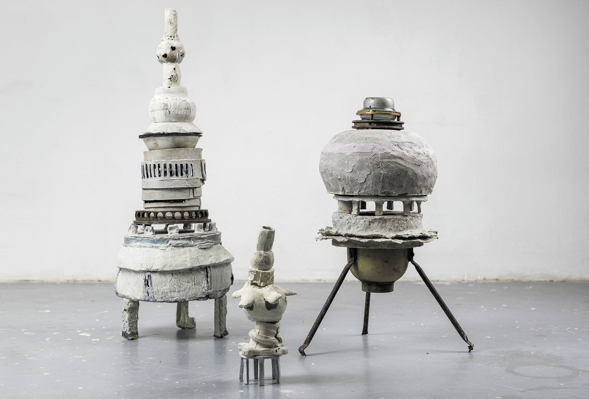 Sarah Bartmann, Objekt Interstellare Talfahrt, 2015. Keramik, Metall, Beton, Ziegel 25–135 x 25–35 cm