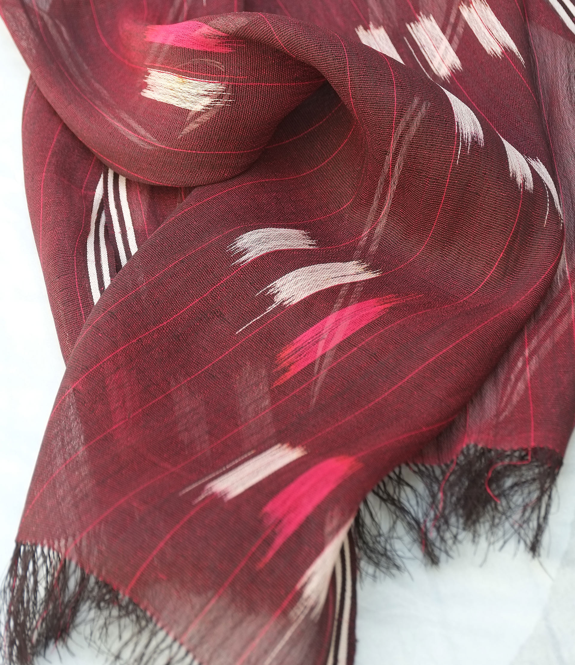 Dass aus Papier auch wunderschöne Schals entstehen können zeigt die Handweberin Maja Vogl, die 2008 mit dem Bayerischen Staatspreis und 2011 mit dem Danner Ehrenpreis ausgezeichnet wurde. Sie nutzt sehr feines, selbstgefärbtes Papiergarn, das aus der indonesischen Bananenpflanze Abaka hergestellt wird. Das Material eignet sich hervorragend für die Gestaltung farbiger Flächen. Im ersten Moment erinnert der beim Webvorgang entstehende Stoff an Leinen, die Tücher bleiben aber beim Tragen kühl und halten damit auch besser die Form. Das Geheimnis der Taschen und Accessoires von Silke Janssen liegt in der Kombination von festen europäischen Papiergarnen mit Garnen, deren Ausgangsmaterial Streifen von Einkaufstüten oder Zeitungen sind. Und die Gefäßobjekte von Kristina Rothe erweisen sich als spannungsvolle Skulpturen, die weder ihren Gefäßcharakter noch das Ursprungsmaterial der Papierfasern verleugnen.
